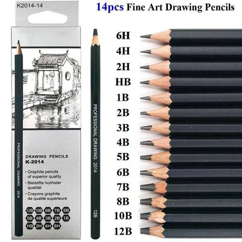 14-Piece Wooden Pencil Set Art Sketching Drawing Exam Writing Pencils for Students School Stationery Office Supplies